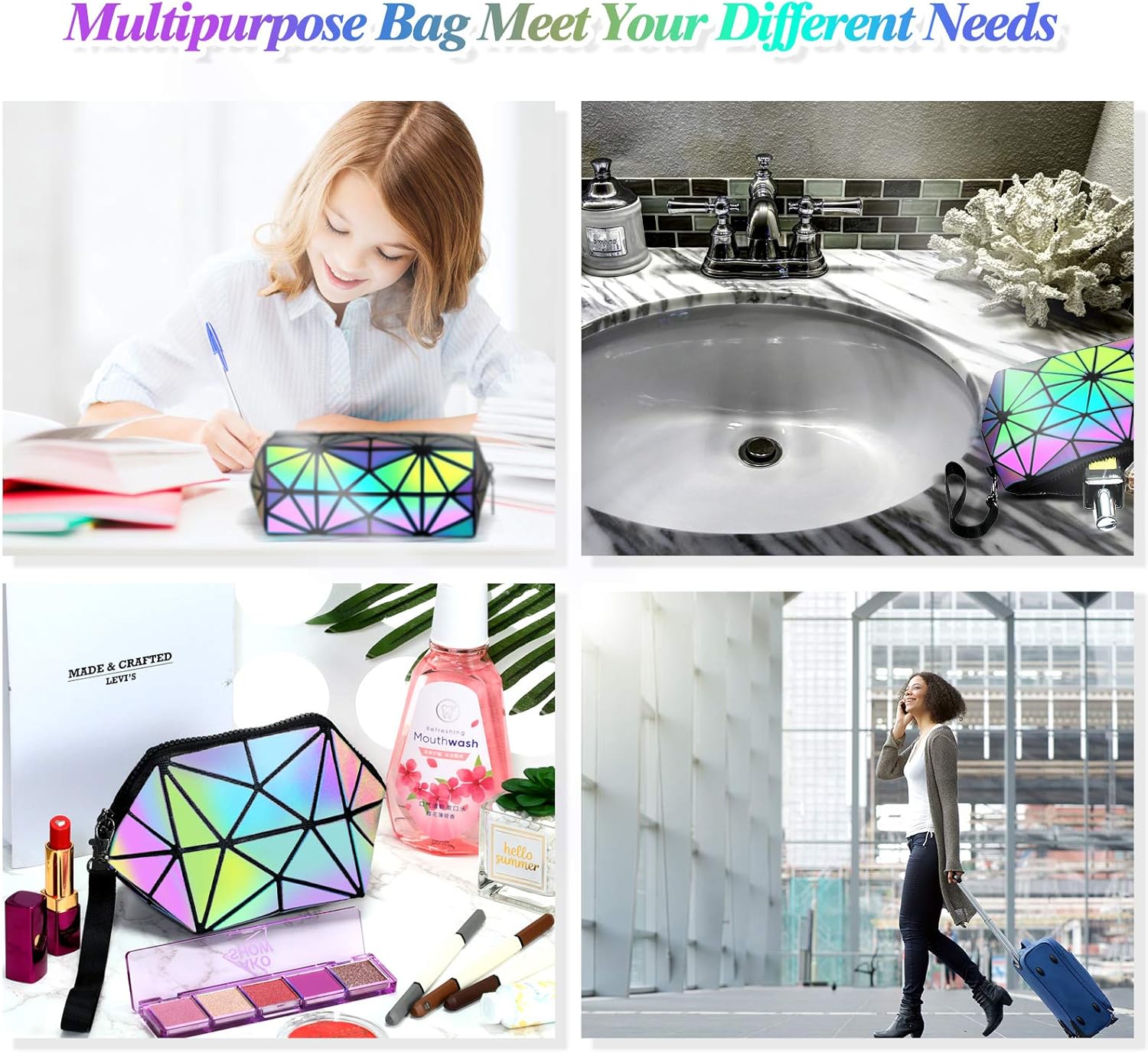 Fashionable luminous make-up baggage: these make-up baggage are manufactured from holographic luminous materials which may change colours with totally different gentle depth, they’re very cool and classy make-up baggage, that are best selections to retailer skincare instruments